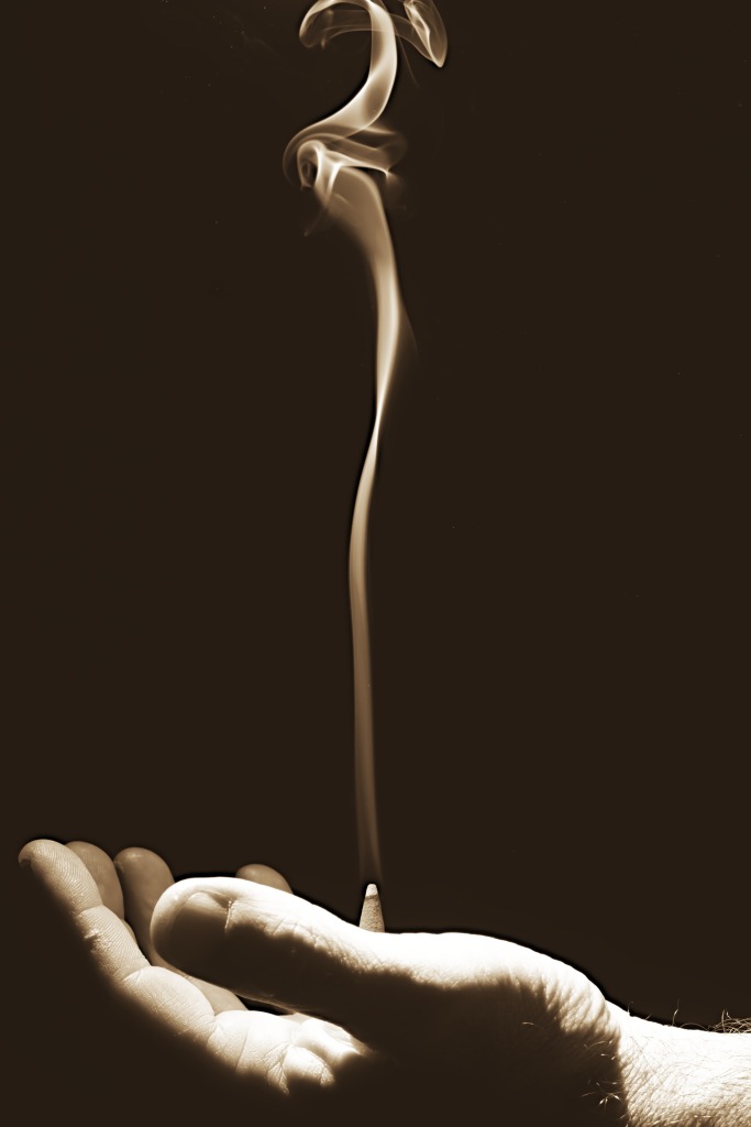 Encens, sans flash, avec traitement lightroom puis retouche photoshop pour unifier le fond noir
