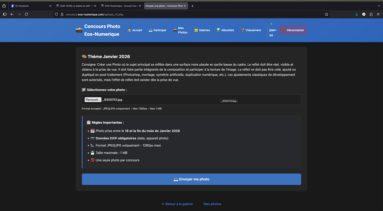 L'activation du statut Abonné sur l'interface du concours m'a effectivement permis d'uploader la photo.