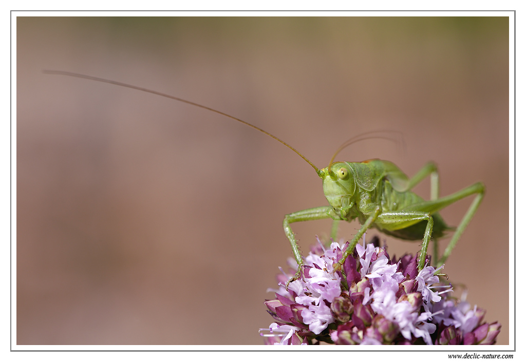 Cette grande sauterelle verte semblait attendre les papillons qui gravitaient autour d'elle.