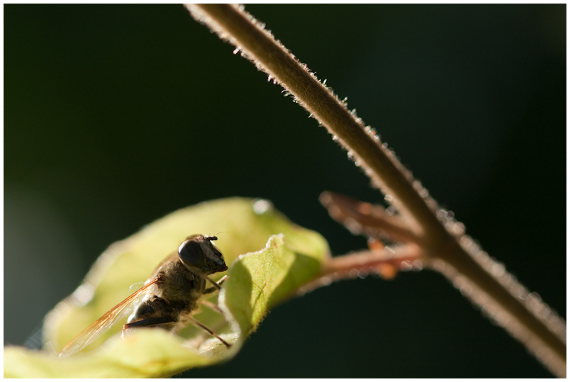 Une abeille commune ? Un Syrphe ? La photo a pas mal de défauts je pense mais pourtant j'accroche à chaque fois sur un je ne sais quoi.