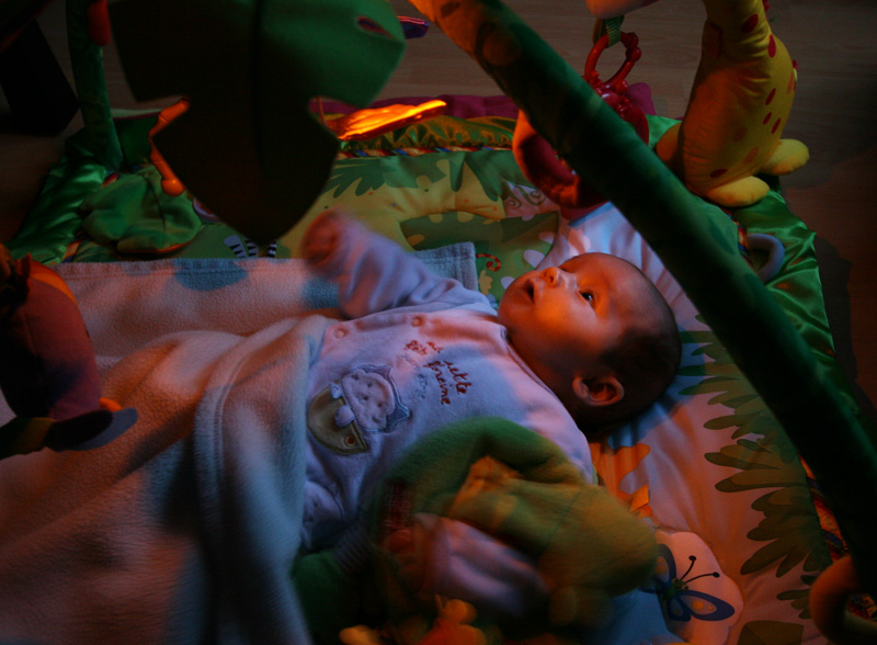 Mon petit Hugo a fait connaissance avec son tapis d'éveil.