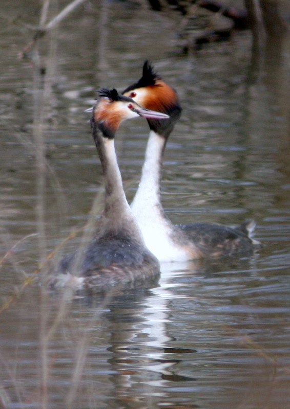 Affût flottant, grèbes huppés