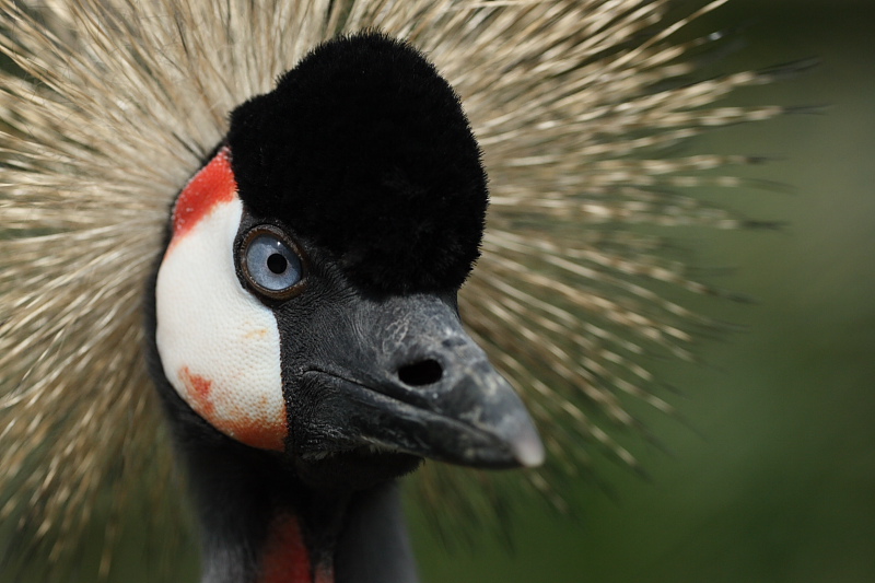 Le contexte. Dans un grand jardin, des oiseaux en liberté dont deux spectaculaires grues couronnées. Très amicales, elles s'approchent toutes seules, j'aurais pu les prendre à 17mm si j'avais voulu (salut Gurol !).