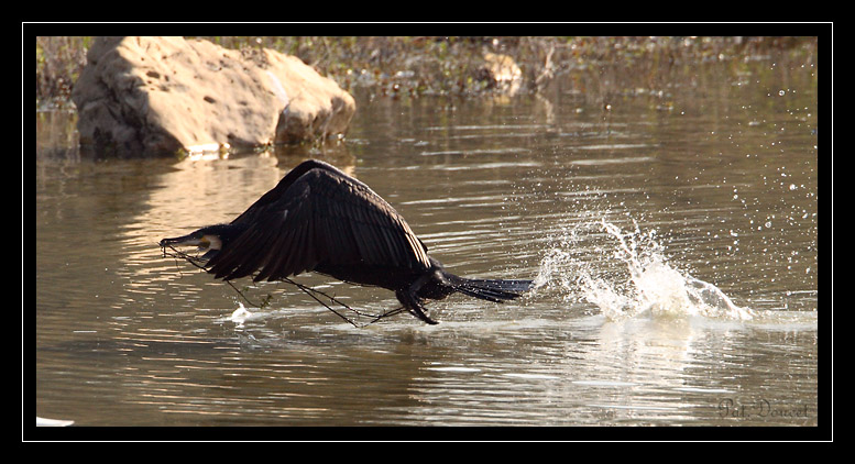 voila le decollage d'un grand cormoran.