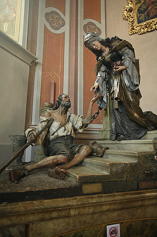 Il y a en particulier cette statue représentant Sainte Elisabeth donnant une obole a un mendiant.