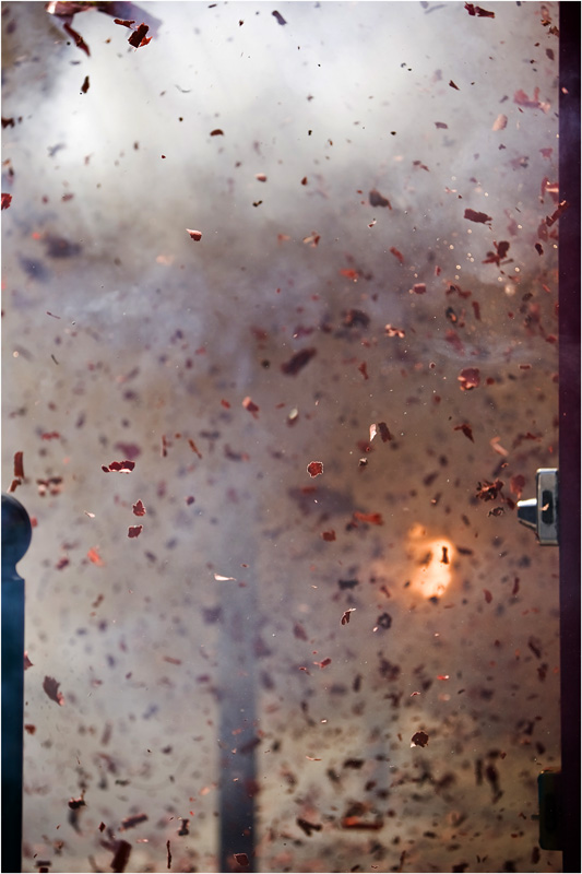 Quelques centième de seconde plus tard, l'explosion de la charge qui est tout en haut (l'hexagone sur la première photo)