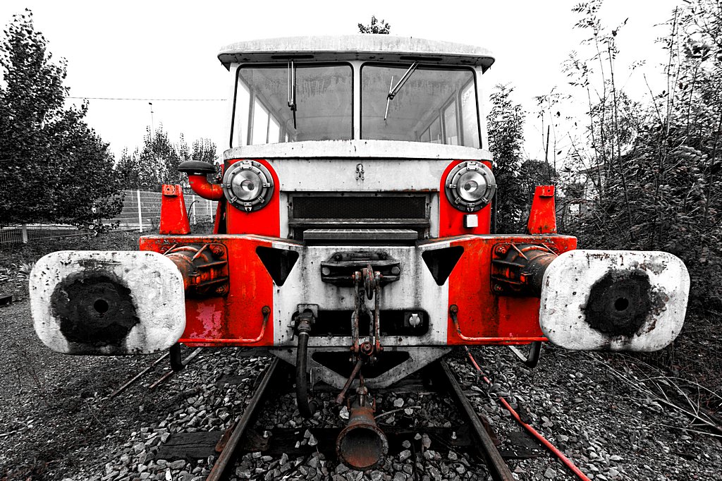 +1 pour la 2, mais il faudrait ne conserver que le rouge de la machine... désaturer le tuyau, les rails, le crochet...