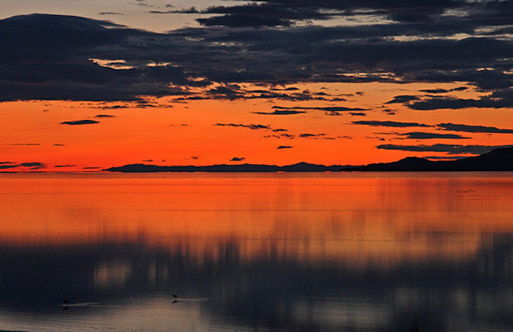 Je te propose un recadrage qui fait perdre une bonne partie de l'image mais je trouve joue sur la symétrie ciel/eau....
