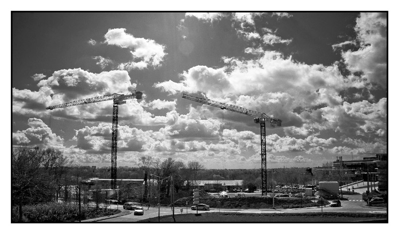 Je la trouve intéressante si l'on se concentre sur les grues et le ciel immense, peut-être en cadrant plus haut...