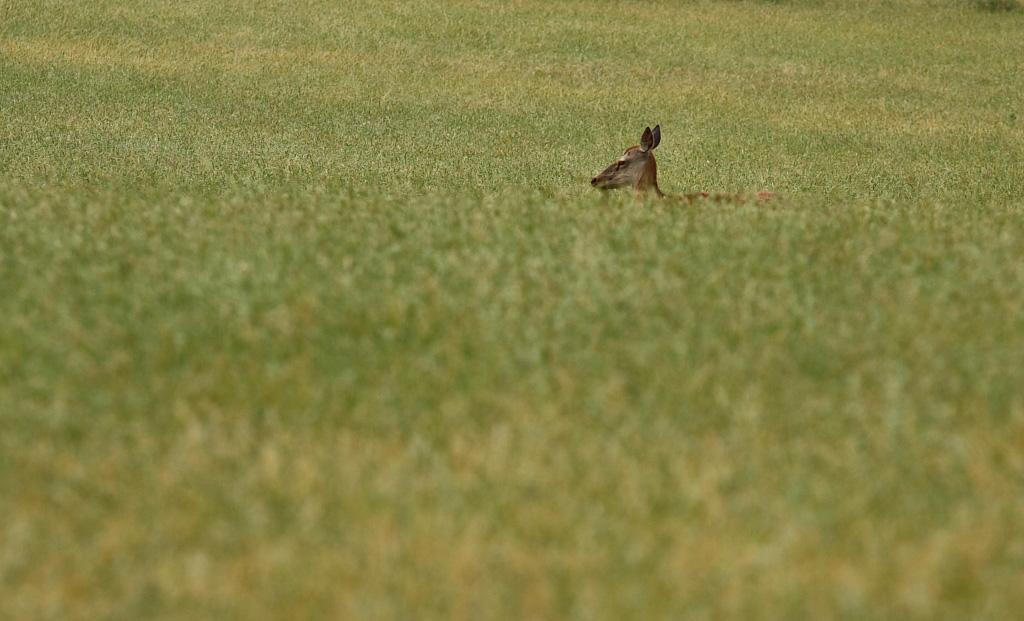 Joli mais un poil loin quand même. J'aurais plutôt cadré en haut, pour que la biche soit sur le tiers inférieur de la photo. A moins que le fond n'était pas beau ?