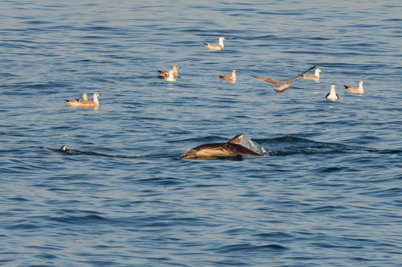 Seance d'observation d'une pêche de dauphins et de fous de Bassan (plus quelques goélands opportunistes)