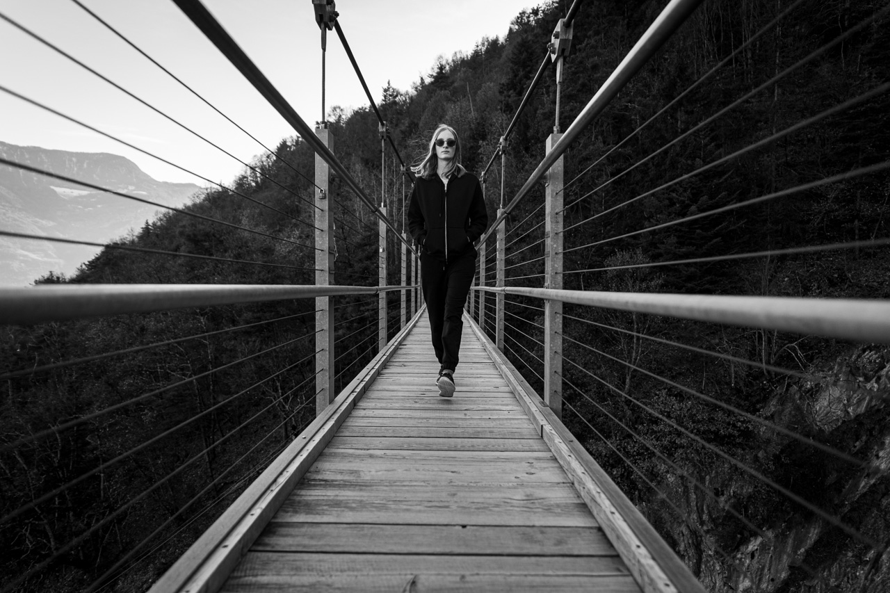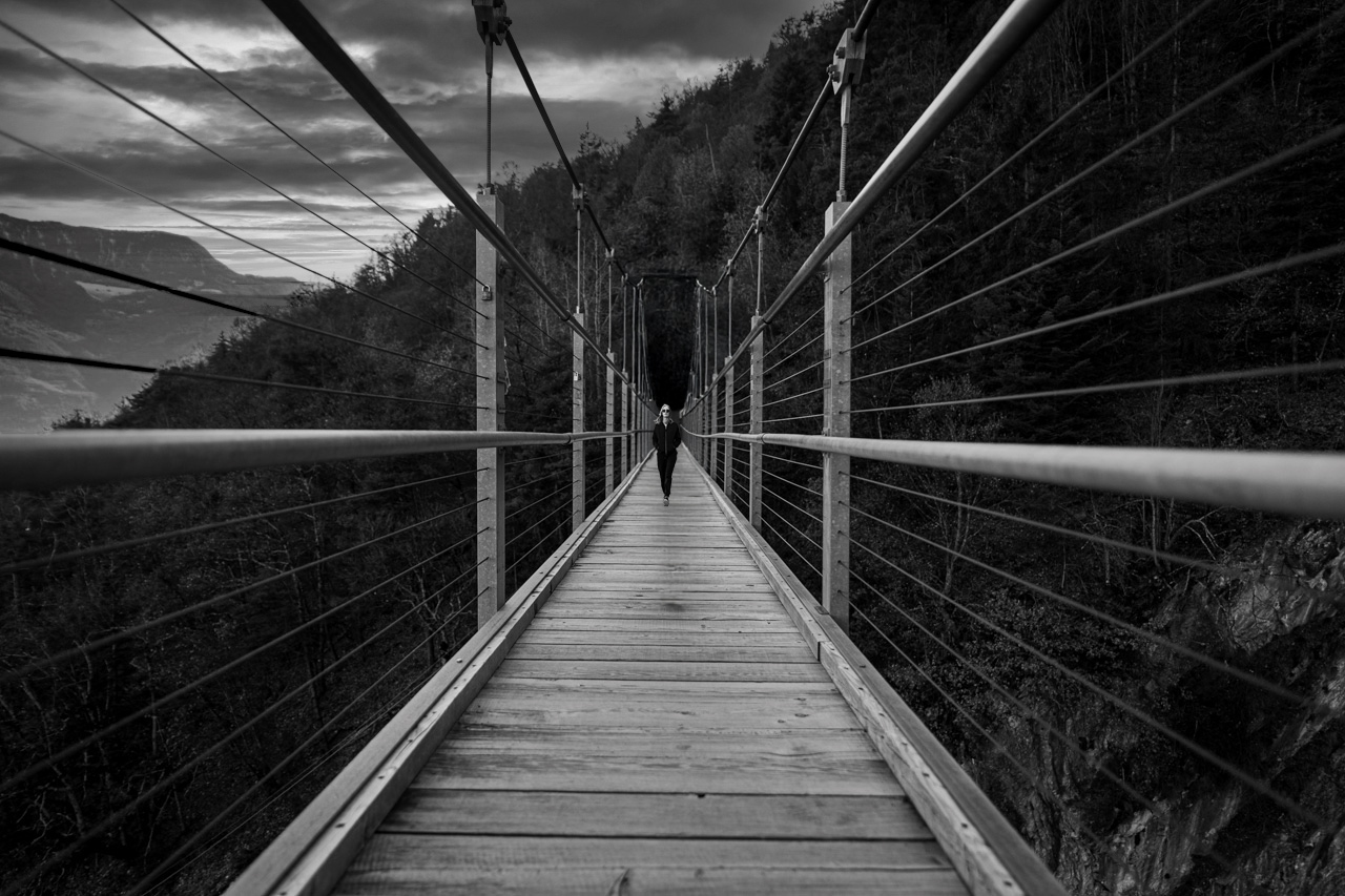2 : j'ai donné moins d'importance au modèle que j’appellerai madame rigide smile elle cassait les fuyantes données par le pont suspendu et n’apportait rien à la force de l'image , du coup, l'image a plus de profondeur .
